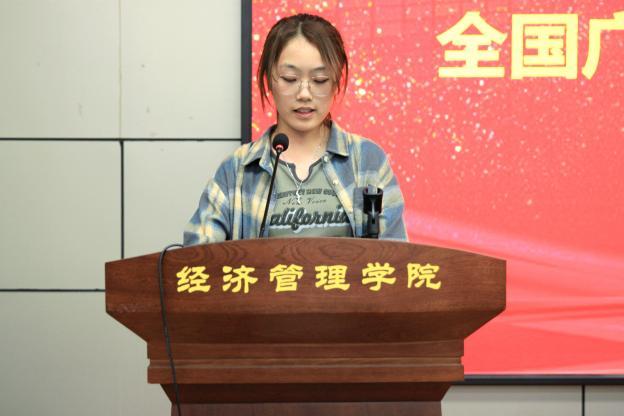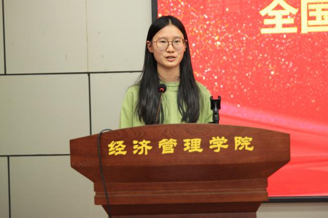 会议伊始,王建平传达并领学了习近平总书记五四青年节对全国广大青年的寄语精神。随后,学生团委第二副书记经管2103班董重成,学校2023年度模范团员2022级农村发展专业朱文超、“五四红旗”团支部代表会计2204班谢一凡、“优秀共青团干部”代表经管2101班卢苗苗、“优秀共青团员”代表会计2201刘子慧五位同学分别结合学习体会和下一步学习工作打算依次上台发言。
