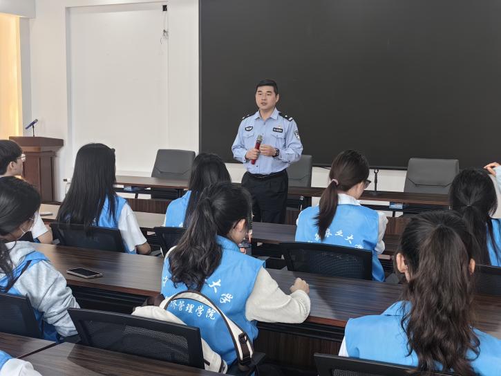 抵达目的地后,来自交警大队的熊警官为志愿者们普及了安全教育知识,主要涉及到学生的安全出行方面:骑行时佩戴头盔是保障骑行者生命安全的最后一道防线,因此外出骑行一定要戴好头盔,出行前要了解路况,出行时注意来往车辆,不看手机,与同伴相互提醒,做到知危险、避危险。举办团体活动时,要统一出发地、统一出行方式,确保每一个人的安全。