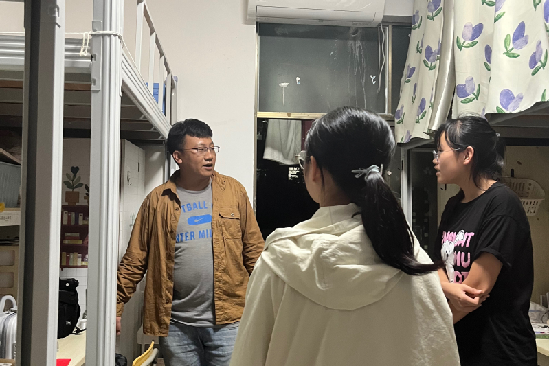 在检查期间马超老师以学生宿舍整体卫生状况、学生宿舍用电安全为重点,对12栋、14栋部分楼层进行了走访。马超老师走进学生宿舍与同学们深入交流,进一步强调了用电安全的重要性,并要求同学们加强对宿舍安全用电问题的重视,自觉营造一个安全、健康、舒适的学习生活环境。