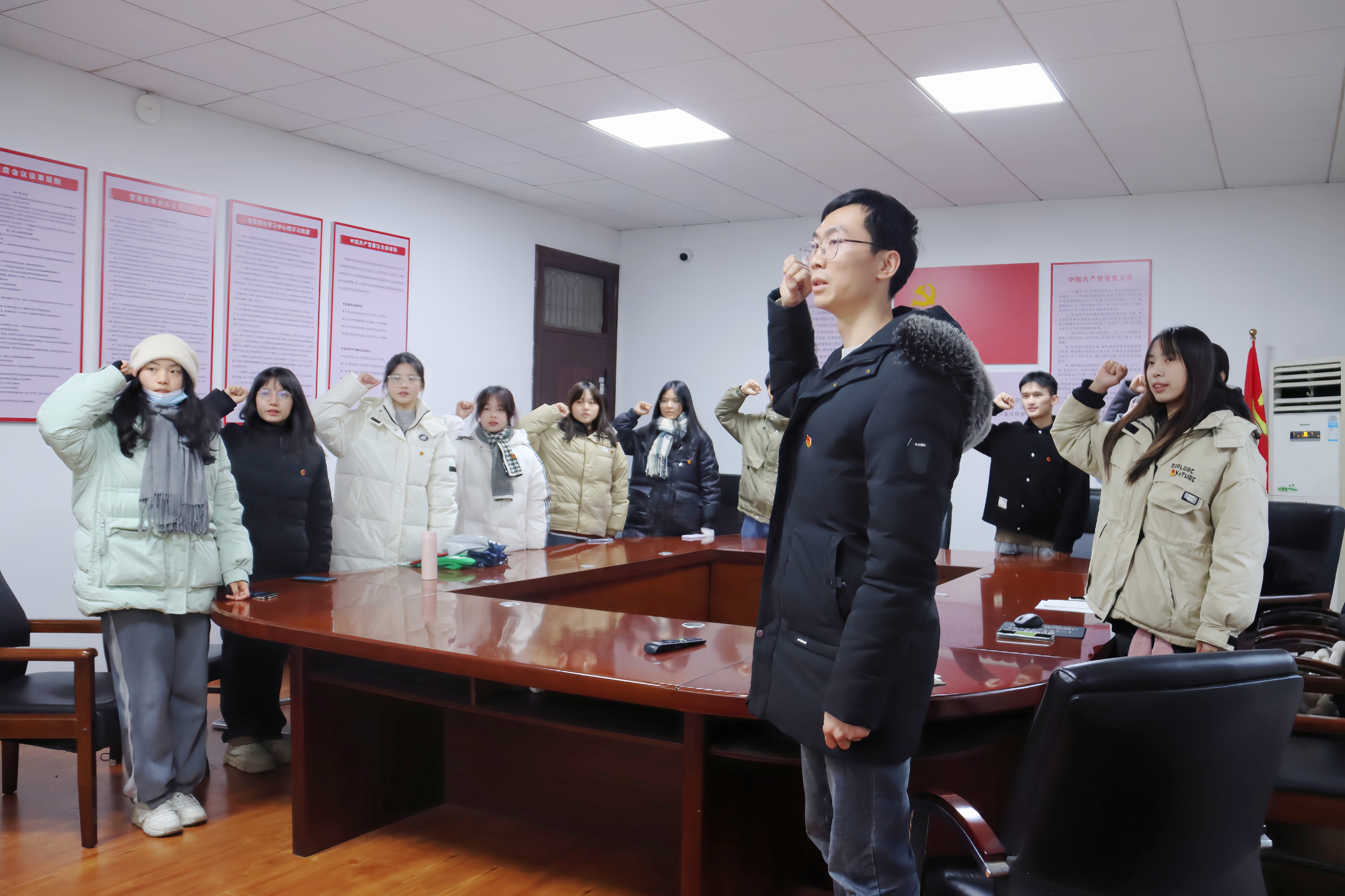 为增强新发展团员加入团组织的光荣感和归属感,进一步激发团员为共产主义事业而奋斗的使命感,12月19日,我院于经世楼212会议室举行新发展团员入团仪式,院团委副书记王建平、2023年度新发展团员和老团员代表共同参与本次入团仪式。