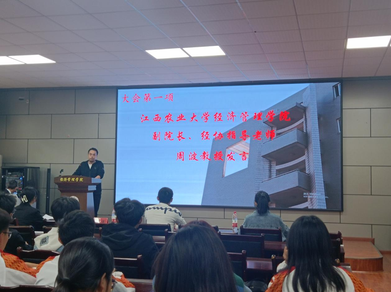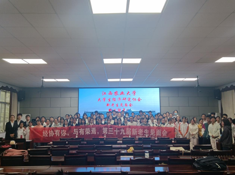 在共同观看了经协年度视频后,见面会正式开始。周波教授、梁志民教授分别代表学院与经协指导老师致辞,他们共同表达了对协会的美好祝愿,希望经协发展蒸蒸日上。经协第39届负责人朱玲玲、第38届负责人叶美连依次上台发言,也表达了对经协的美好期待和未来可期。经协第39届负责人田冰冰以及第39届各部门负责人分别详细介绍经协及其七大部门,以便让2022级新会员更加了解经协,了解经协各个部门,也明确了他们将要加入的部门。最后,见面会在第39届全体负责人庄严的宣誓中完美落幕,经协全体新老会员合影留念!