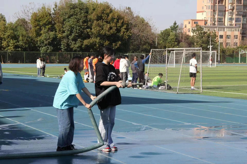 为加强学校安全工作,增强我校师生的消防安全意识,提高大家的自救防范能力,江西农业大学联合经开区消防大队于3月14日在东区图书馆广场开展两次消防考核演习,6名消防队队员、学工办老师马超以及30余名学生志愿者参与。