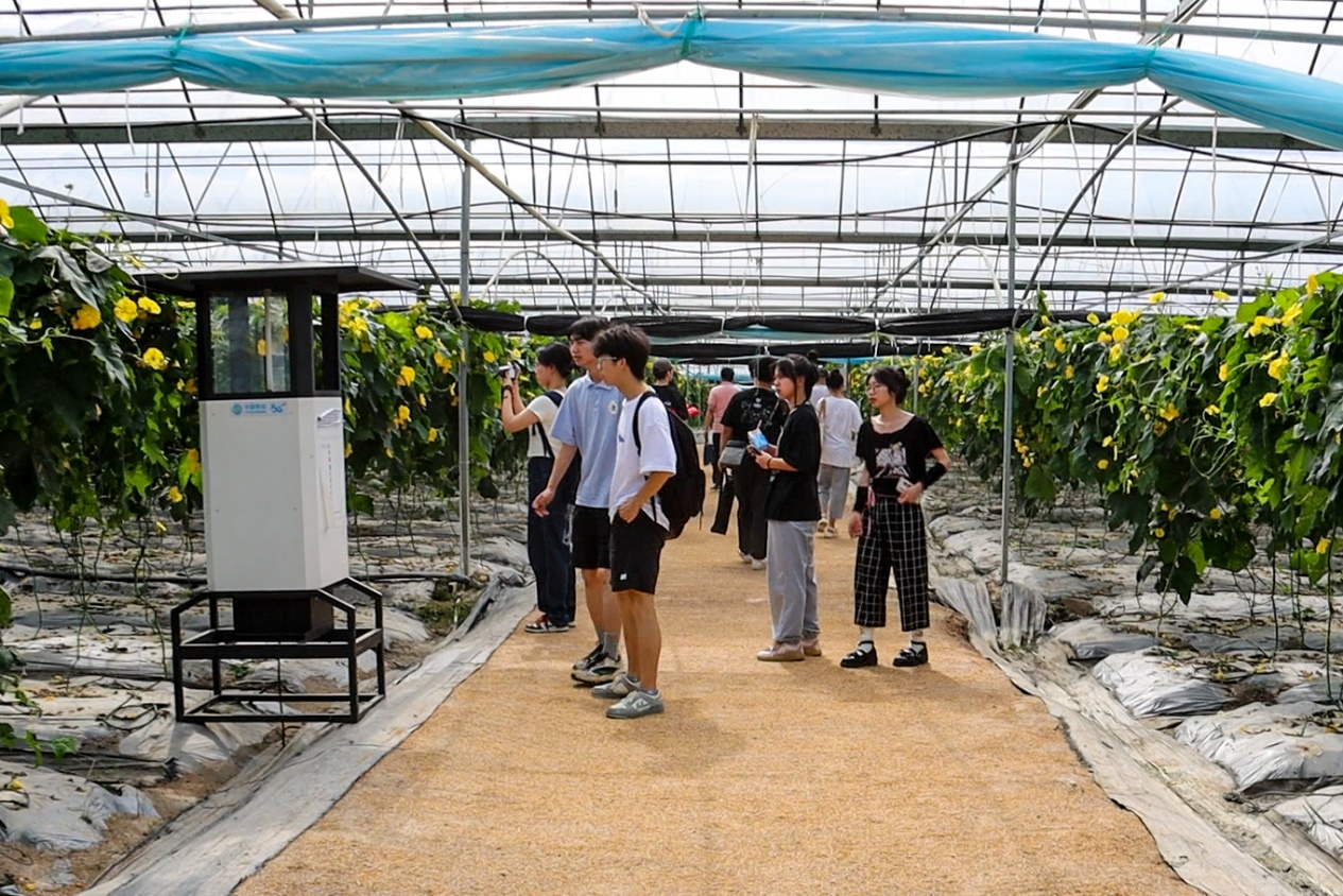 图为队员参观智慧蔬菜大棚
