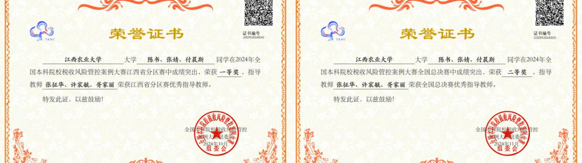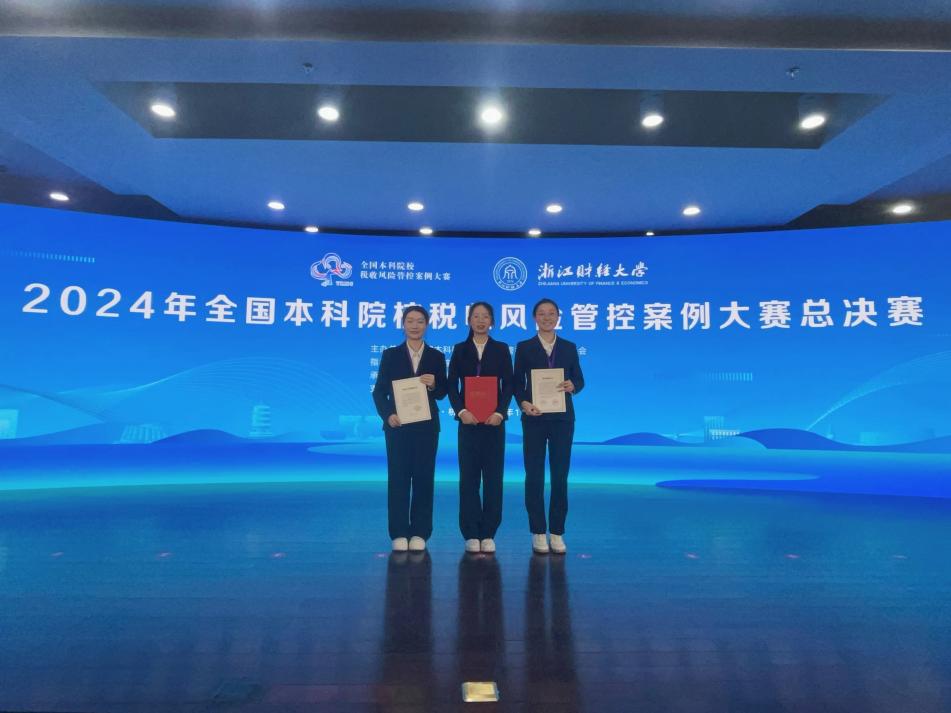 近日,由全国本科院校税收风险管控案例大赛组委会主办,浙江省注册税务师协会指导,浙江财经大学承办的2024年全国本科院校税收风险管控案例大赛总决赛圆满结束。由经管学院会计系学子陈书、张婧、付晨斯三位研究生组成的参赛团队在张征华教授、许宸毓老师和中汇(江西)税务师事务所胥家丽副总的共同指导下荣获江西省分赛区一等奖,成功晋级全国总决赛(全省仅五个名额)并荣获二等奖,首次实现我校该赛事国家二等奖的突破。