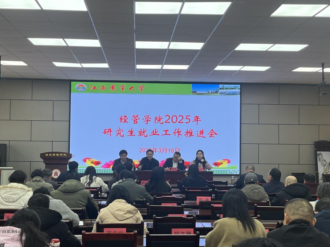 3月18日,经济管理学院召开2025年研究生就业工作推进会。学院领导班子成员出席会议,会议由学院党委副书记罗志华主持,全体研究生导师、研究生就业工作人员参加会议。