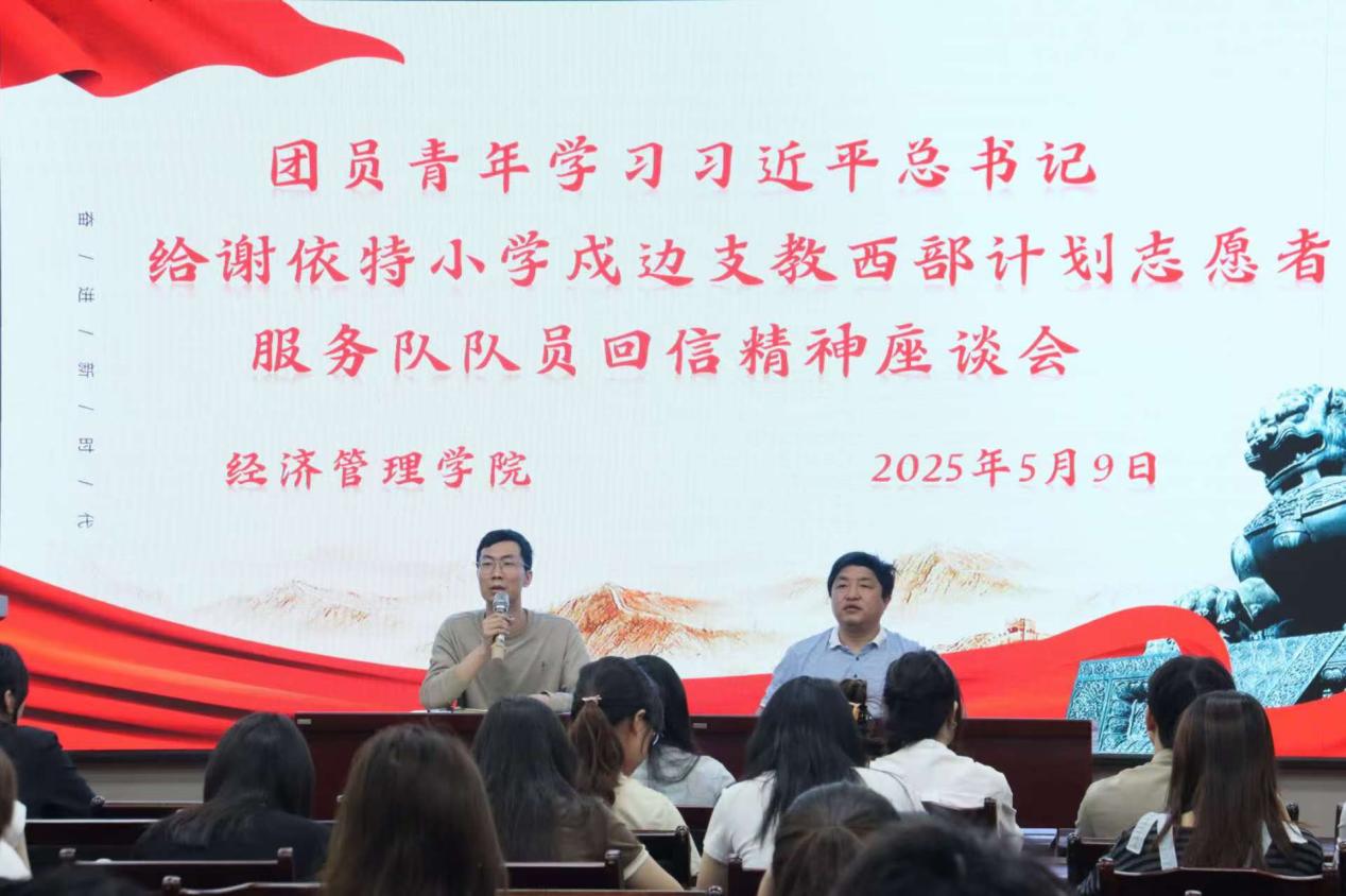 为深入学习贯彻习近平总书记给谢依特小学戍边支教西部计划志愿者服务队队员的回信精神,我院于5月9日中午,在经世楼207召开专题座谈会。学院党委副书记罗志华、团委副书记王建平及全体团支书、学生组织主要学生干部、青年代表参与此次座谈。