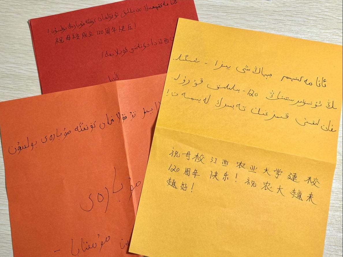 破冰环节中,“祝福传递”的民族语教学、“同心共乐”的飞花令诗词大会、紧张刺激的“数字炸弹”等游戏将活动氛围推至高潮,现场一片欢声笑语。当活动行至尾声,江农新生提笔书怀,笔墨间既有“赣鄱月照各族心,江农情暖求学路”的真切,也有“祝母校秋安,愿各族同窗共赏一轮月”的期许,将民族节日的暖意与对母校的祝福相融,为活动轻轻画上温情的句号。