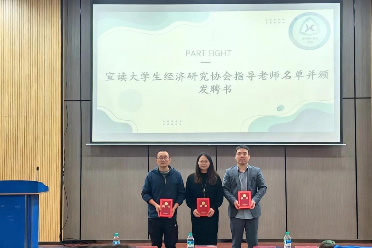 10月28日晚,大学生经济研究协会第42届换届大会在E-207教室圆满落幕。校团委刘艳婷老师,经管学院梁志民教授、艾娟博士,廖冰博士,校团委学生代表、各兄弟高校、兄弟社团学生代表应邀出席。经协全体新老会员近150人参加了此次换届大会。