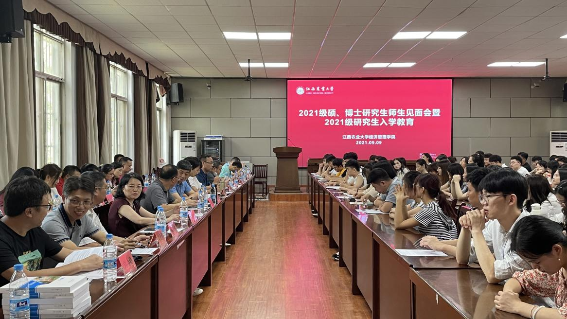 为促进2021级研究生能更快、更好地融入经管学院的大家庭,熟悉研究生的学习和生活,经济管理学院于9月9日下午在教研楼207会议室举行研究生师生见面会暨研究生入学教育。院党委书记郭军海、院长翁贞林,全体研究生导师和研究生新生参加了此次大会。会议由副院长周波主持。