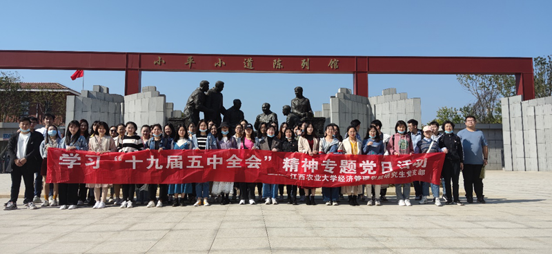 为深入贯彻学习党的十九届五中全会精神,1114日上午,经管院研究生党支部党员集体赴新建区小平小道陈列馆开展主题党日活动,了解中国改革开放总设计师邓小平同志在江西的工作与生活情况,回顾历史,展望未来。负责研究生工作的许玫老师、周亮梅老师和兰仙平老师参与了此次活动。
