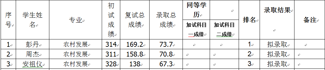 经管院2020年全日制农业硕士调剂考生第一批拟录取名单