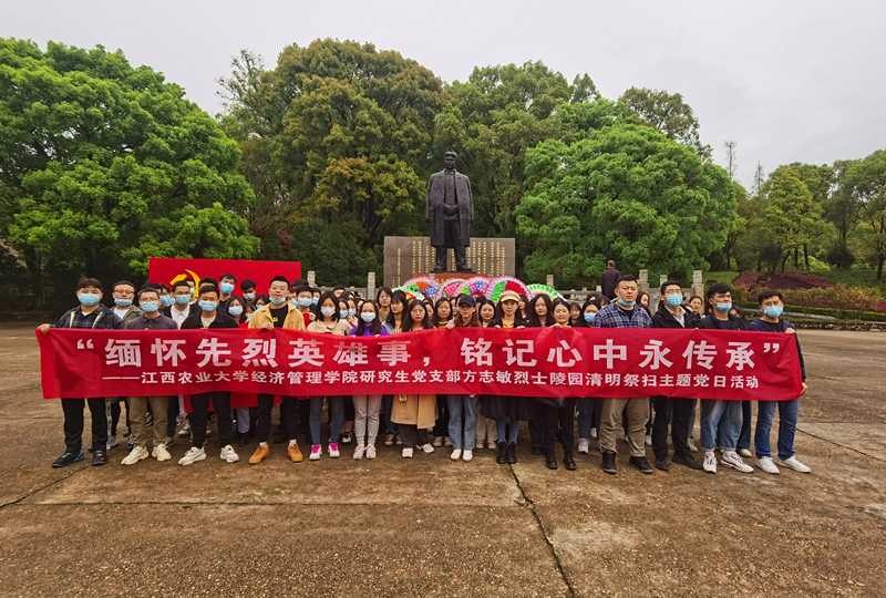 为缅怀革命先烈,铭记光辉历史,传承红色基因,推进党史学习教育深入开展,4月2日上午,经济管理学院研究生第一、第二党支部党员和入党积极分子代表步行前往方志敏烈士纪念园开展“缅怀先烈英雄事,铭记心中永传承”清明祭扫主题党日活动。