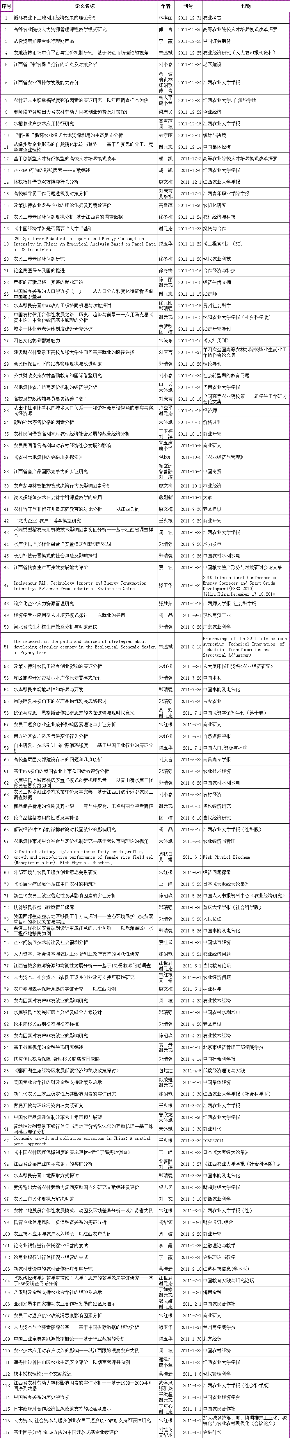 主要学术论文(2011)