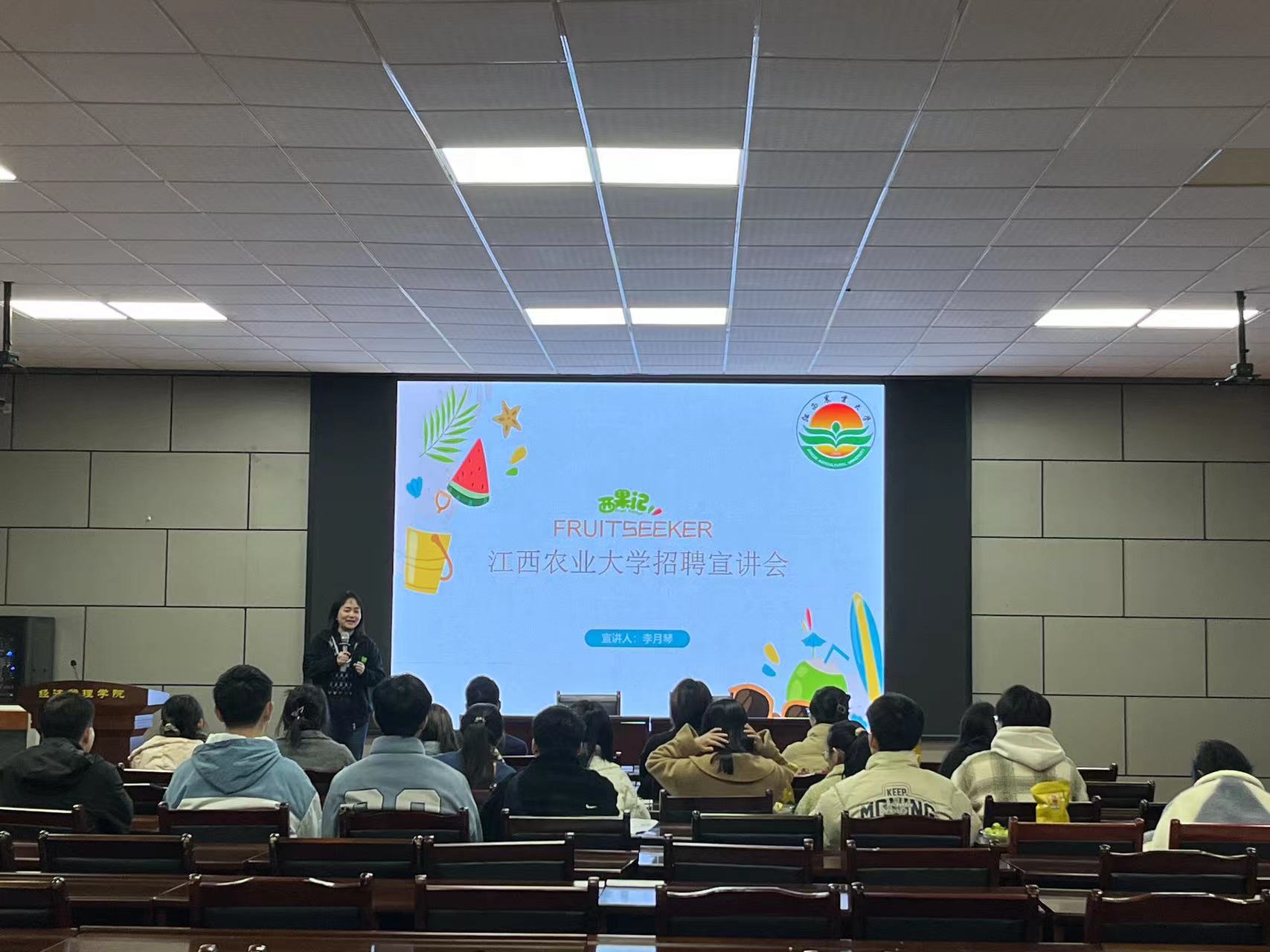11月13日晚19:00,我院于经世楼207室成功组织召开广东西果记农业发展有限公司宣讲会,本次宣讲会由该公司HR李月琴主讲。