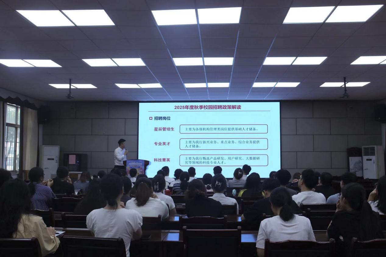 会议伊始,刘经理就公司的“横向可交流,纵向可发展”的职业发展理念进行了介绍,让在场毕业生们了解了入职之后的职业发展前景。随后,刘经理围绕公司的招募需求,对公司的招聘岗位、岗位要求及薪资待遇进行了详细地讲解,以此增强毕业生的应聘意愿。最后,在场的毕业生们与刘经理进行了积极的互动交流,刘经理也提出“以人为本,星途广阔”的口号,诚挚邀请大家积极投递简历。
