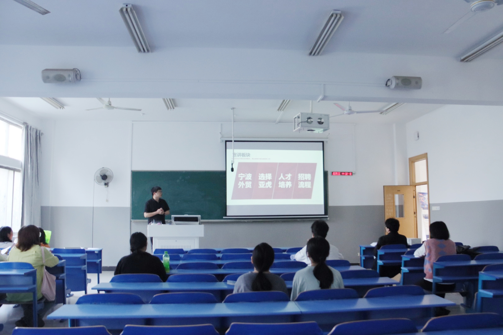 10月11日下午14:30,我院于E教204室组织举办宁波亚虎进出口有限公司宣讲会,本次会议由该公司HR胡峥韬主讲。