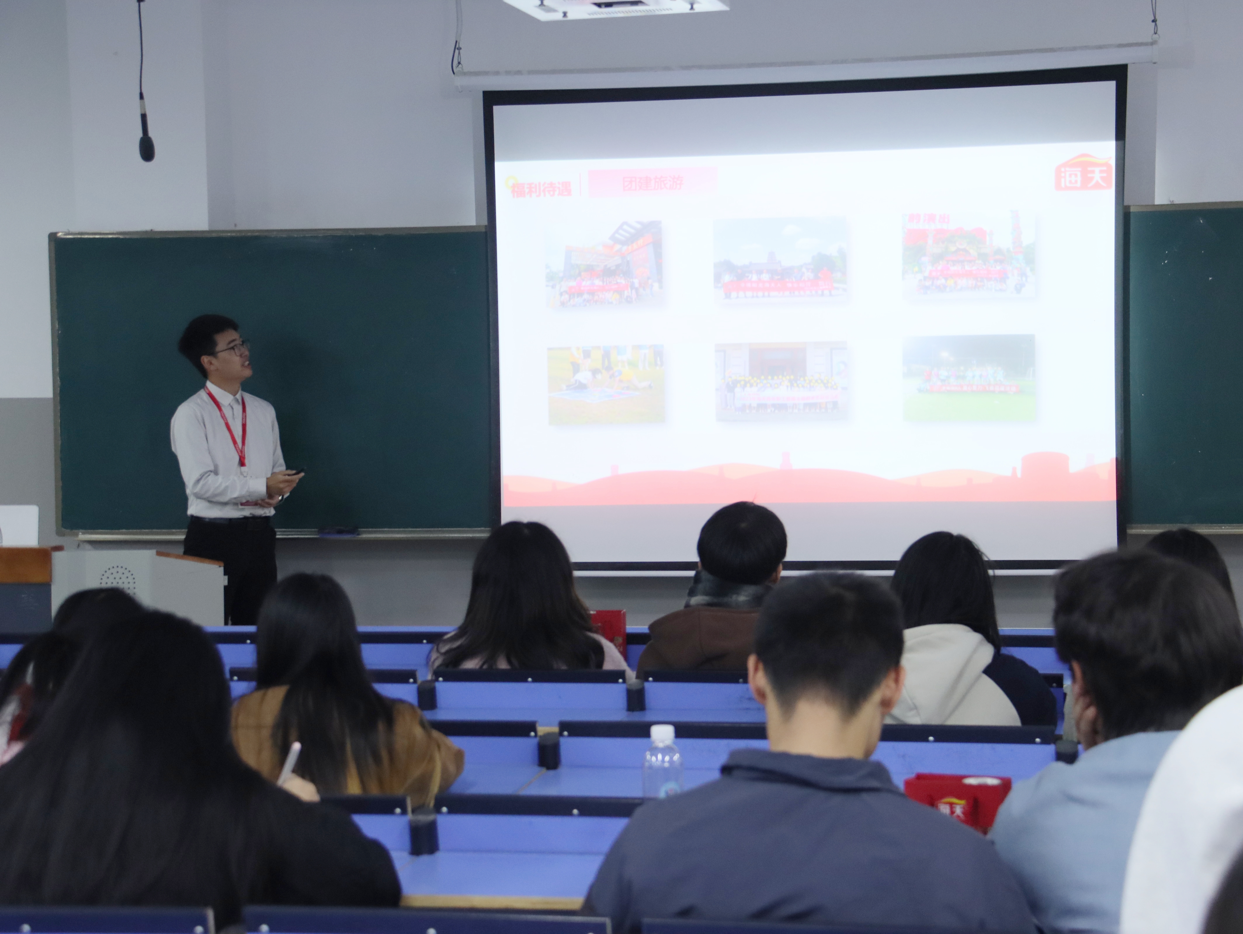 11月27日晚19:00,我院于E教101室成功组织召开海天味业宣讲会,本次宣讲会由该公司HR袁远航主讲。