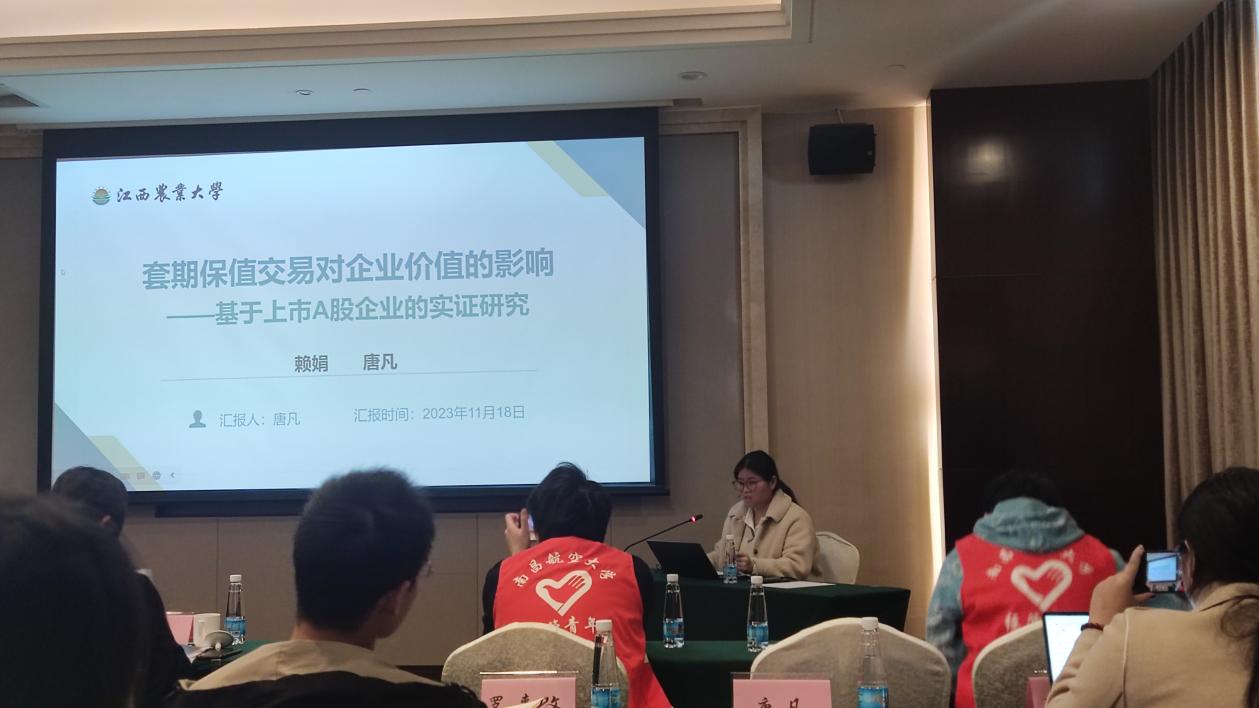 颁奖仪式由江西财经大学工商管理学院院长、江西省管理学会秘书长胡海波教授主持,表彰了获奖的本科生代表、研究生代表与指导老师。颁奖仪式上还为平行论坛获奖学术论文颁发了证书,并向本届年会承办单位颁发感谢状。平行论坛分为三组同时进行,共有105篇优秀的学术论文入围,我校会计硕士研究生唐凡就其与导师共同完成的“套期保值交易对企业价值的影响—基于上市A股企业的实证研究”论文进行了汇报。此次平行论坛不仅加强了学院与学会的联系,也为学生和教师提供了一个展示自我、交流学习的平台。