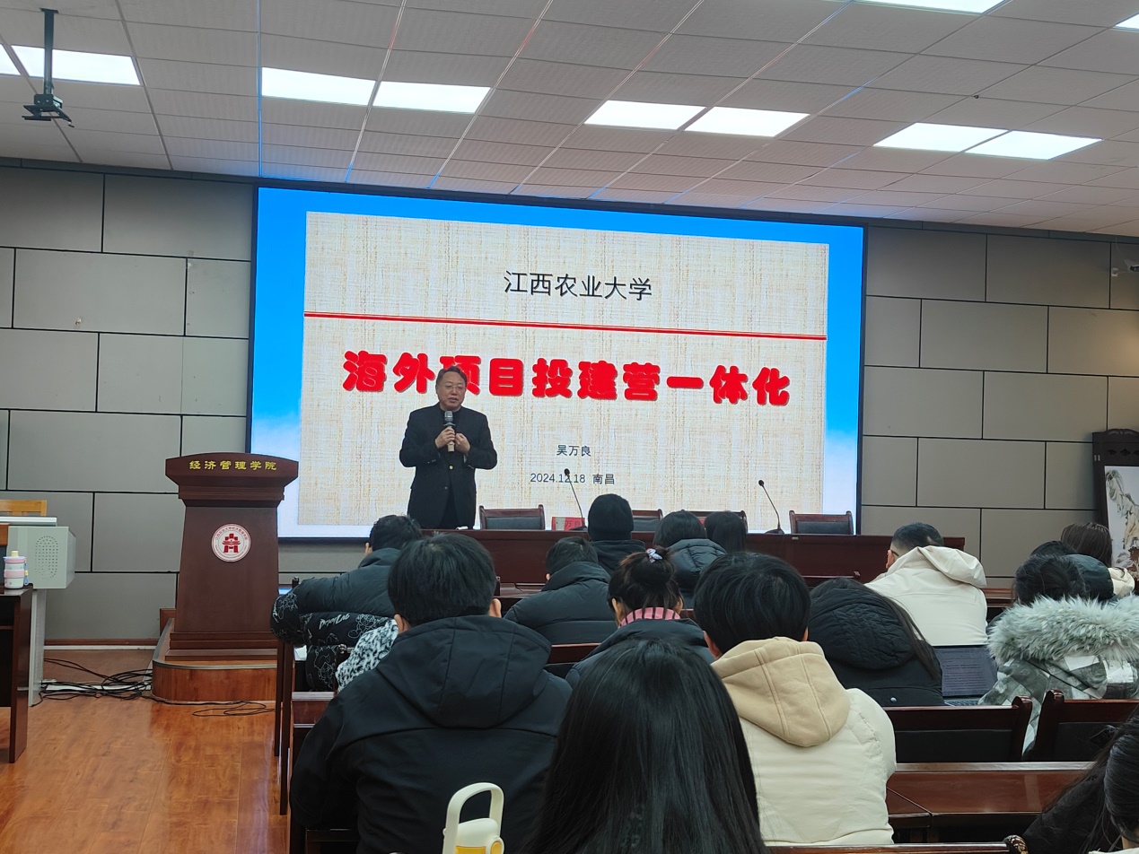 2024年12月18日下午,中央财经大学管理科学与工程学院、对外经济贸易大学中国金融学院客座教授吴万良先生应邀来我院作了《国际投资建设运营一体化》的专题讲座,讲座由经管院会计系张春美教授主持,学院会计研究生及其他专业部分研究生参加。吴万良先生曾任中国土木集团公司董事长,长期在央企从事企业管理、投资管理及海外工程管理工作。