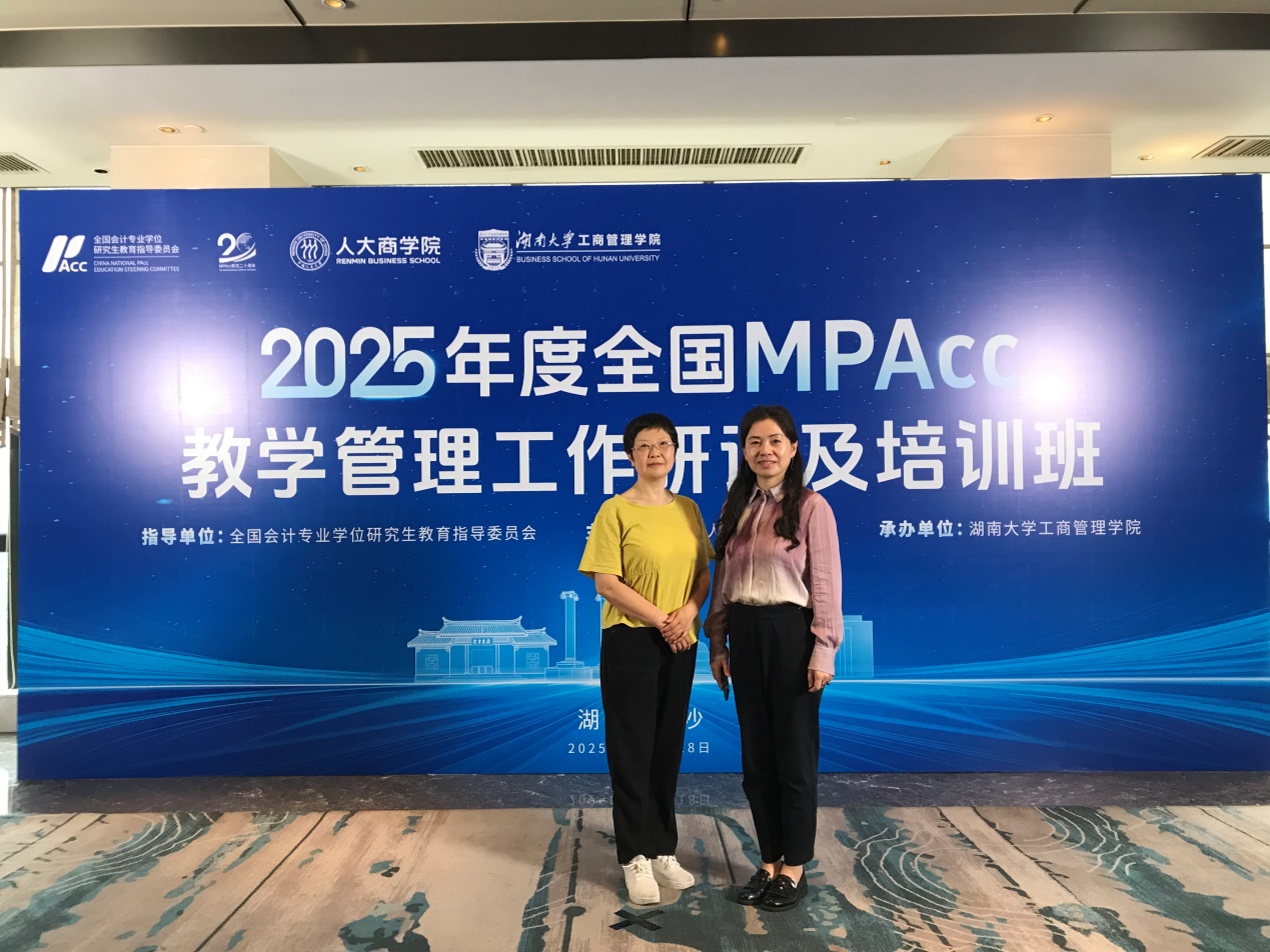 5月17-18日,我院副院长兼MPAcc教育中心主任张征华教授、MPAcc教育中心副主任肖小玮老师,于长沙参加了由全国会计专业学位研究生教育指导委员会指导、中国人民大学商学院主办、湖南大学工商管理学院承办的2025年度全国MPAcc教学管理工作研讨及培训班。
