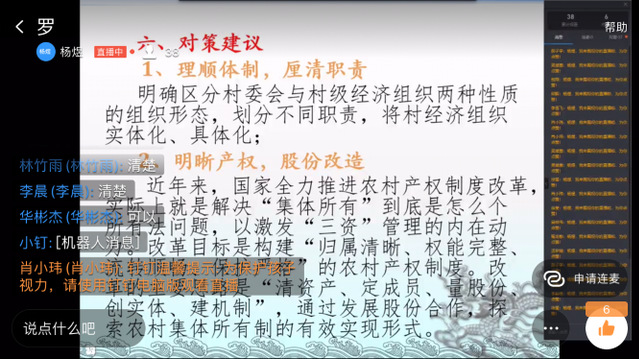 MPAcc教育中心引入实务界专家罗青平、连小灵、李超老师,给MPAcc学员全程讲授《涉农审计与金融》,本学期该课程今天结束对2019级MPAcc班线上授课的环节。