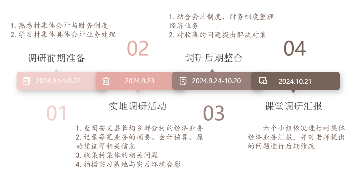 2024年9月23日下午,随着3辆大巴车缓缓驶入乡村内部,农大会计学子开启了一场村集体查账之旅。本次调研由张征华老师指导,肖小玮、熊翅新、许宸毓老师带队,分别前往安义县、南昌县、新建县三点进行账目调研行动。本小组为第一小组(共六组),其成员为:周六(组长)、邓绪兵、章清、赖清华、金童、王婷、李艳枚、蔡婧宸、刘妍。在肖小玮老师的带领下,前往安义县长均乡,对曹村村、观察村、天坪村、把口村、白沙村、长均村、京庄村共7村的2023年度的村集体业务账目进行查阅。调研过程如图1所示: