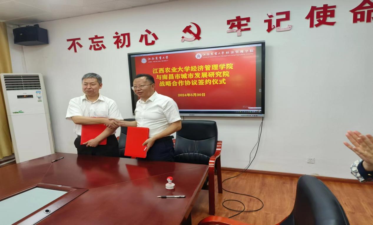 5月30日,为深化产教融合,促进政企、校企协同育人,实现政产学研推用,经济管理学院与南昌市城市发展研究院在经世楼204会议室举行战略合作签约仪式。学院院长李剑富、副书记赵刚、会计系和农经系系主任、南昌市城市发展研究院党组书记、院长何彦军等一行同志参加了签约仪式。签约仪式由学院副院长张征华主持。