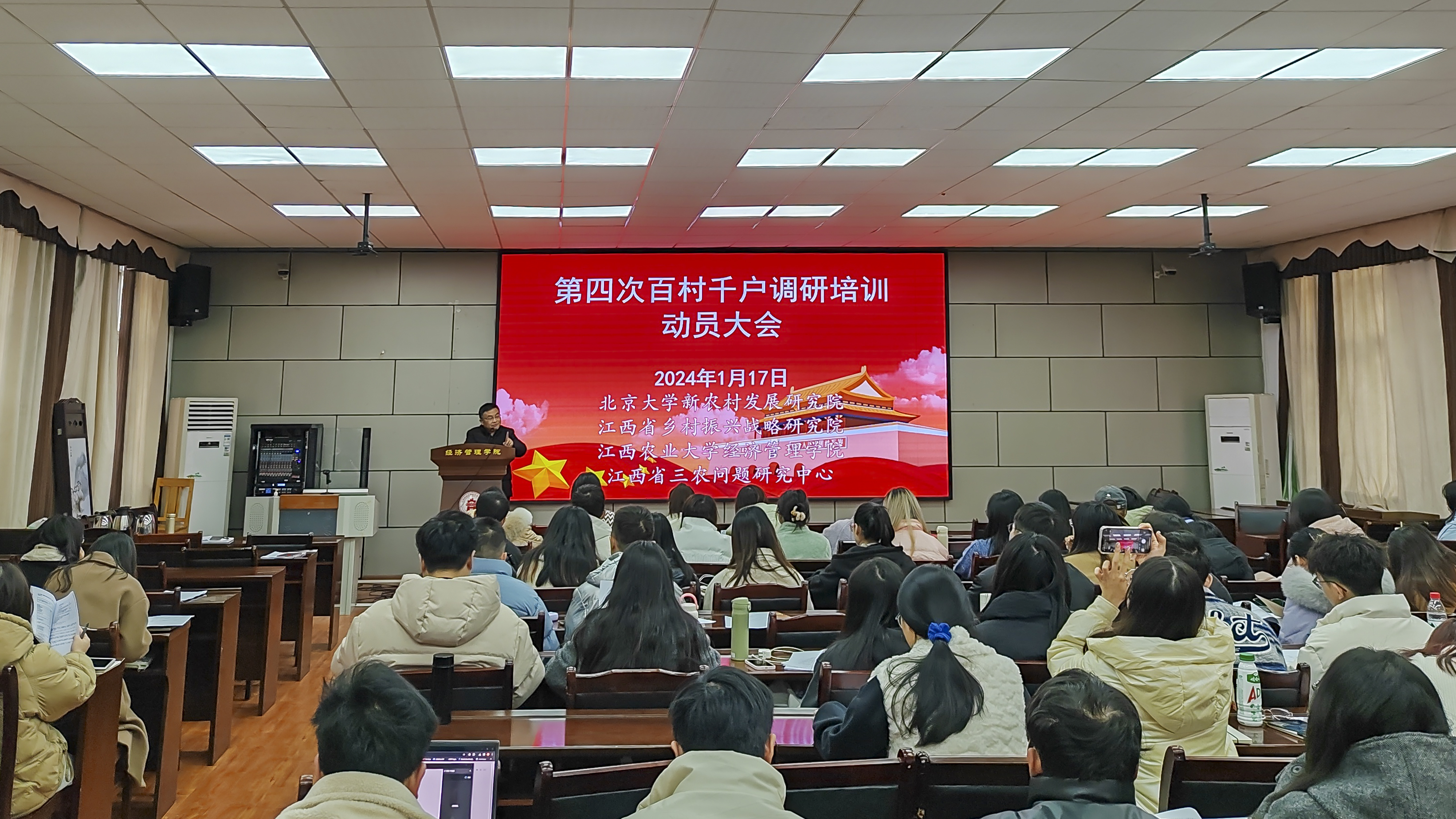 为深入了解省内农业农村发展情况,掌握乡村振兴战略实施现状,进一步推进农业强省战略提供决策支持。2024年1月16日至25日,由江西农业大学经济管理学院、江西省乡村振兴战略研究院联合北京大学多个学院,在江西开展了第四期“百村千户”调研。此次调研由北京大学新农村发展研究院院长、江西农业大学江西省乡村振兴战略研究院院长黄季焜教授总负责,来自北京大学、江西农业大学共110余名师生参与。