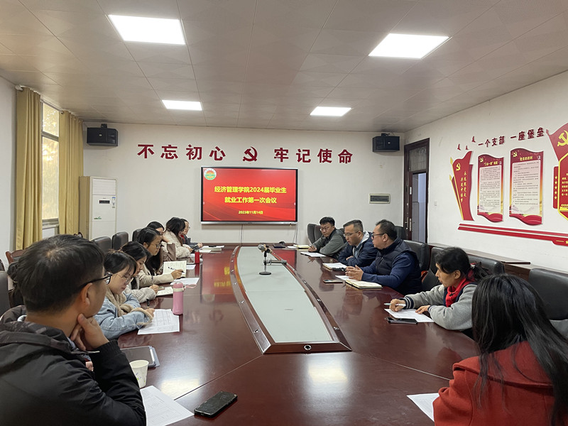 为全面落实党中央、国务院对高校毕业生就业创业工作的决策部署,抓好学院2024届毕业生就业工作,11月14日下午,经济管理学院2024届毕业生就业工作第一次会议在经世楼204室召开。学院党委书记郭军海、毕业班班主任及就业干部参加了此次会议,会议由院党委副书记赵刚主持。