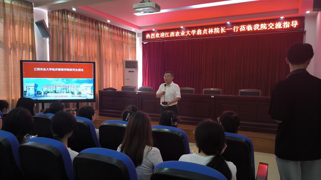 近日,经管学院党委书记郭军海、院长翁贞林带领班子成员分别赴井冈山大学、九江学院、宜春学院、萍乡学院、上饶师范学院等高校开展2024年研究生招生宣讲活动,取得了良好的预期效果。