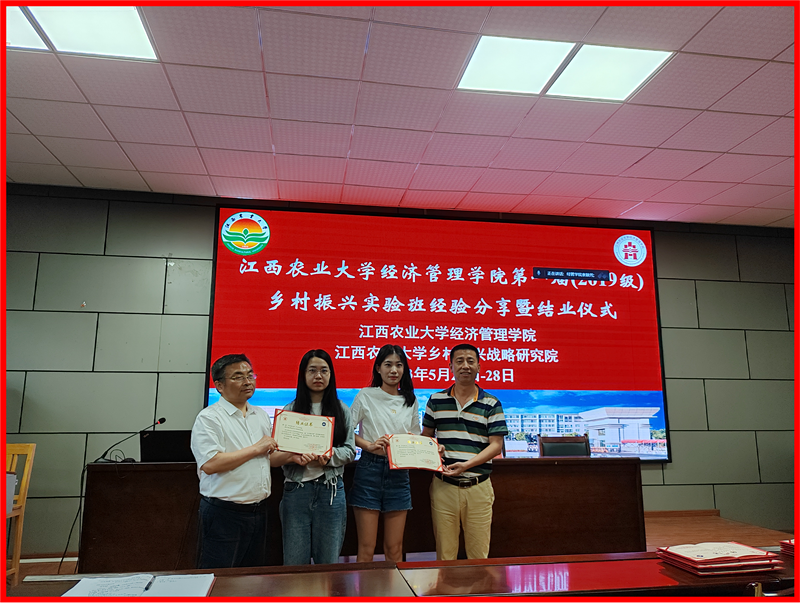 2018年“中央一号”文件全面实施乡村振兴战略。为适应乡村振兴国家重大战略需求,同年1月,江西农业大学联合北京大学中国农业政策研究中心等国家级高端智库,共建江西省乡村振兴战略研究院。依托江西省乡村振兴战略研究院,2020年6月,江西农业大学经济管理学院从农林经济管理专业2019级本科生范围内选拔25名优秀学生组建首届“乡村振兴实验班”。根据“产业兴旺、生态宜居、乡风文明、治理有效、生活富裕”五大主题分成五个小组,通过理论专题学习、社会实践服务、科学研究创新等方式,同时纳入政府职能部门、产业企业、高校、研究机构联合培养,构建了“政产学研”四位一体协同模式进行人才培养。开班至今,三年学习期满,“乡村振兴实验班”成效初步显现:首届“乡村振兴实验班”共25人,中共党员20名,占比80%;国家英语四级通过率100%;国家英语六级通过率92%;就业率100%,其中保研、考研升学共13人,升学率为52%,有多名同学进入中国人民大学、中国农业大学、暨南大学、华中农业大学、西北农林科技大学等“双一流”高校深造;考公上岸5人,企业就业5人。