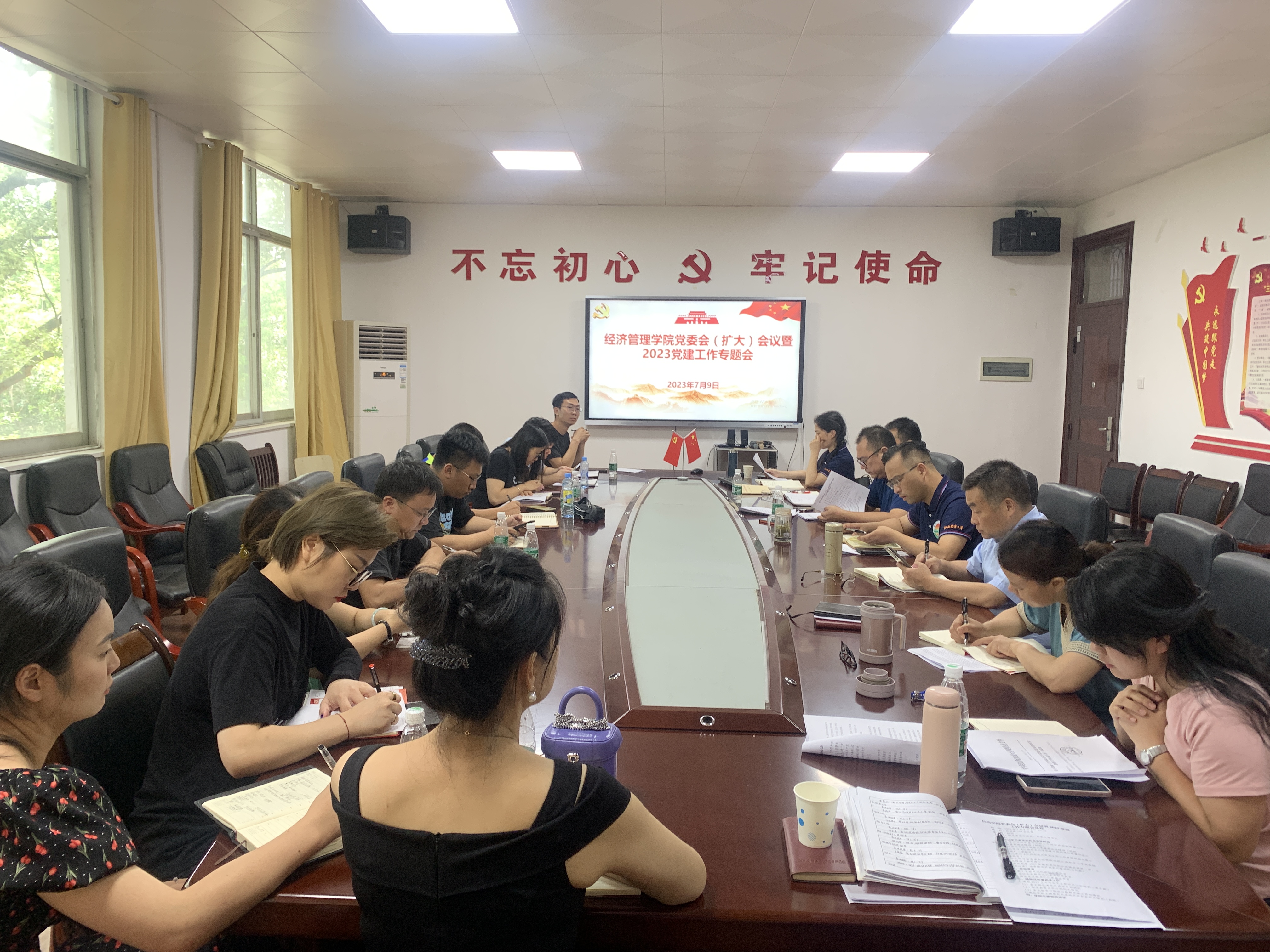 为持续推进主题教育走深走实,夯实学院党建基层基础,提高党建工作水平,7月9日,经管学院组织召开党委会(扩大)会议暨2023党建工作专题会,学院党委领导班子全体成员、各党支部书记参加会议。会议由院党委副书记赵刚主持。