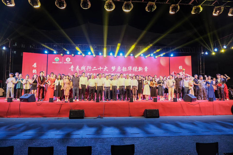 毕业晚会,深情送别学子。5月15日晚,学院于东区操场举办“青春践行二十大,梦启韶华续新章”主题毕业晚会,晚会现场设计红毯入场、拍照打卡、活动签名、发放院徽胸章等环节,用活力的舞蹈、动人的歌声、生动的小品、深情的朗诵,尤其是毕业10周年、15周年、20周年、25周年、30周年、35周年的6位校友的精彩诵读节目,掀起了晚会的高潮,表达了对2023届全体毕业生的美好祝福和殷切期望。