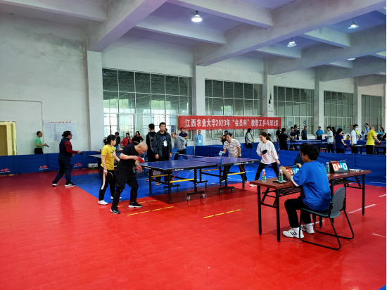 4月15日-16日,由江西农业大学校工会举办的教职工“会员杯”乒乓球比赛在学校体育馆顺利举行。全校共有20支代表队参赛,本次比赛采用五场三胜制形式,双方队员按男单、女单、混双、男单、女单的顺序依次出场对阵比赛,经过激烈角逐,经管学院教工参赛队伍取得了第五名的好成绩,再创了学院历史最好成绩。