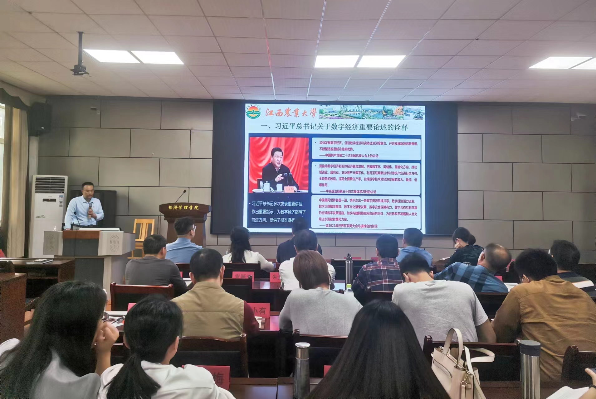 为深入推进主题教育,强化理论学习效果,5月4日下午,经管学院举办学习贯彻习近平新时代中国特色社会主义思想主题教育读书班辅导报告会。副院长周波以“学习习近平总书记关于数字经济的重要论述”为题作专题辅导报告。院党委领导班子、学院处级干部、党支部书记、教研室主任、教工第一支部党员参加会议。会议由院党委书记郭军海主持。