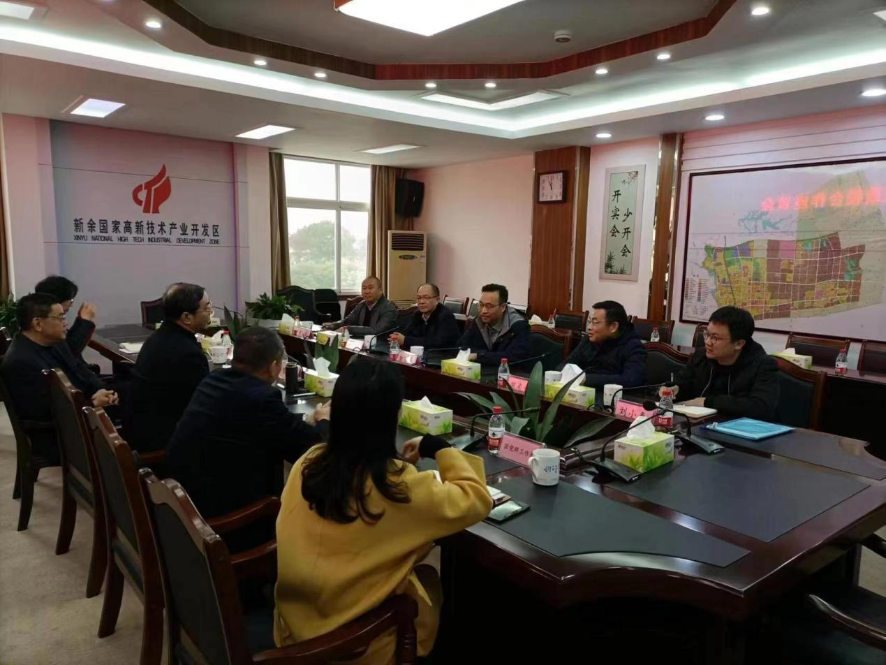 当天上午,院领导一行前往新余国家高新技术产业开发区管委会看望慰问在此挂职锻炼的学院教师李明玉博士,同时与新余高新区领导举行政校合作座谈。座谈会上,新余高新开发区党工委书记喻国杰介绍了高新区经济社会发展状况,尤其是产业布局和发展状况,同时对李明玉博士近一年来的挂职工作表现表示充分肯定和高度评价,并表示以此为契机开展与学院的政校合作。郭军海对李明玉博士表示慰问,并对新余高新开发区给予李明玉博士的培养和关心表示感谢。翁贞林介绍了学院学科发展、专业建设、人才培养和社会服务状况,同时表示希望与新余高新开发区开展政、校、企协同人才培养,服务产业高质量发展和乡村全面振兴。