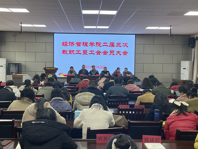 2月28日下午,经管学院在经世楼207室隆重召开二届三次教职工暨工会会员大会,学院领导班子成员及全体教职工参加会议。大会由院党委副书记、工会主席赵刚主持。