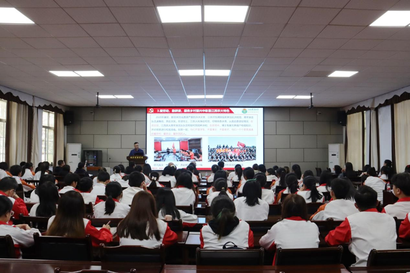 “我们的理想,在希望的田野上,禾苗在农民的汗水里抽穗,牛羊在牧人的笛声中成长......”一首歌唱祖国繁荣富强的《在希望的田野上》拉开了本次党课的序幕。郭军海围绕“以史为鉴、全面把握‘三农’工作的重大成就”、“深刻认识、准确理解推进乡村振兴的重要意义”、“赓续传统、接续践行推进乡村振兴的责任担当”、“牢记使命、奋力谱写推进乡村振兴的时代华章”等四个方面为广大师生党员上了一堂主题鲜明、内容丰富、深入浅出的党课。重点讲述了党在四个历史时期“三农”工作取得的重大成就,乡村振兴战略的基本内涵、时代价值、实现路径,学校在服务江西“三农”和乡村振兴工作中做出的努力与成绩,学院如何围绕“经益求‘金’”党建品牌创建,培育好乡村振兴“金种子”和贡献好乡村振兴“金点子”等内容。最后,党课在大家齐唱《在希望的田野上》落下帷幕。