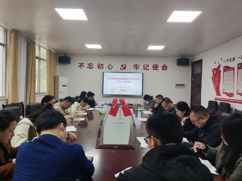 11月16日上午,经管学院于经世楼204室召开党委理论学习中心组(扩大)学习会暨党建重点工作推进会,全体党委领导班子成员、各支部书记参加此次会议。会议由院党委书记郭军海主持。