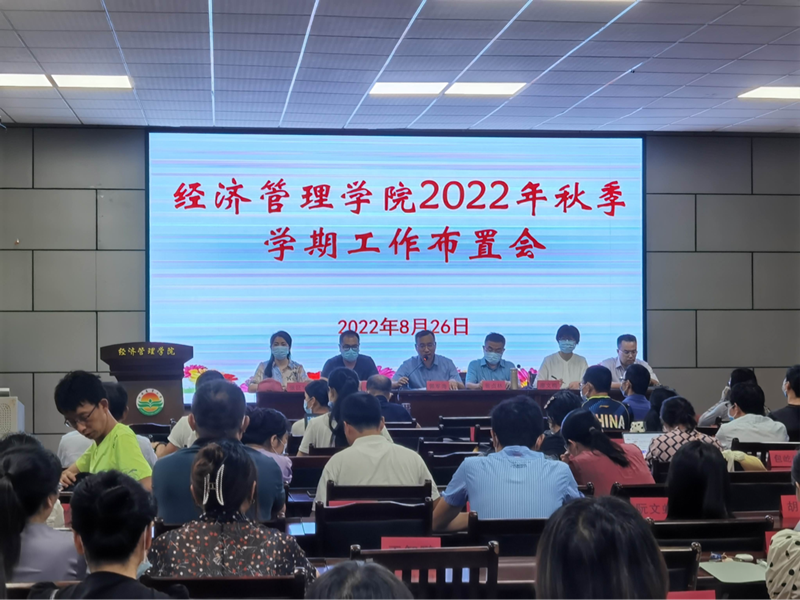 8月26日下午,经管学院于经世楼207室召开2022年秋季学期工作布置会,全体院领导及教职工参加此次会议,会议由院党委书记郭军海主持。
