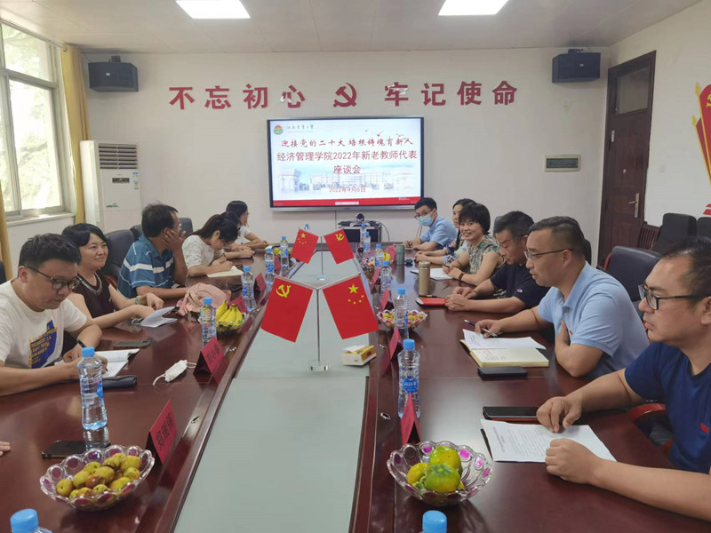 为庆祝第38个教师节,进一步加强教师队伍建设,促进新老教师经验交流,9月6日下午,经管学院在经世楼204召开“迎接党的二十大,培根铸魂育新人”2022年新老教师座谈会。院领导班子成员、新老教师代表共计20余人参加会议,会议由院党委书记郭军海主持。
