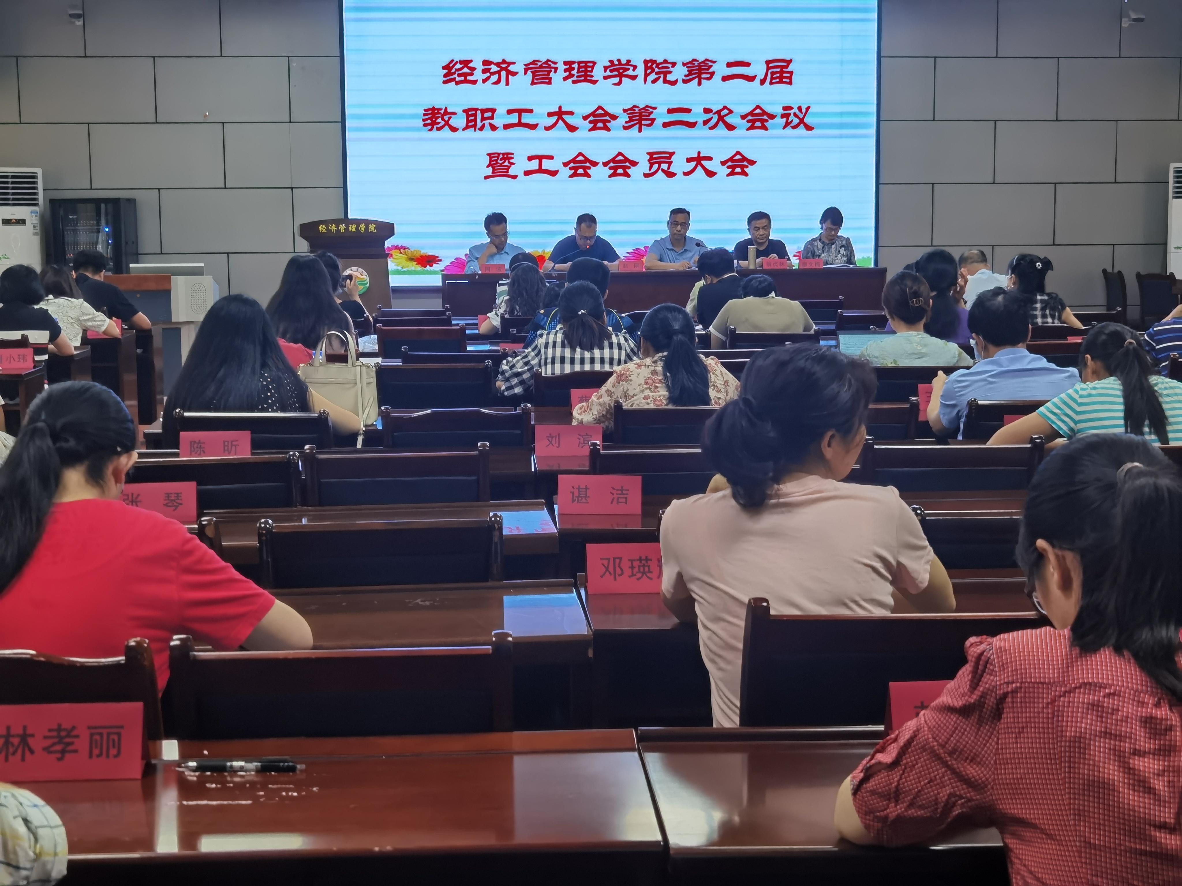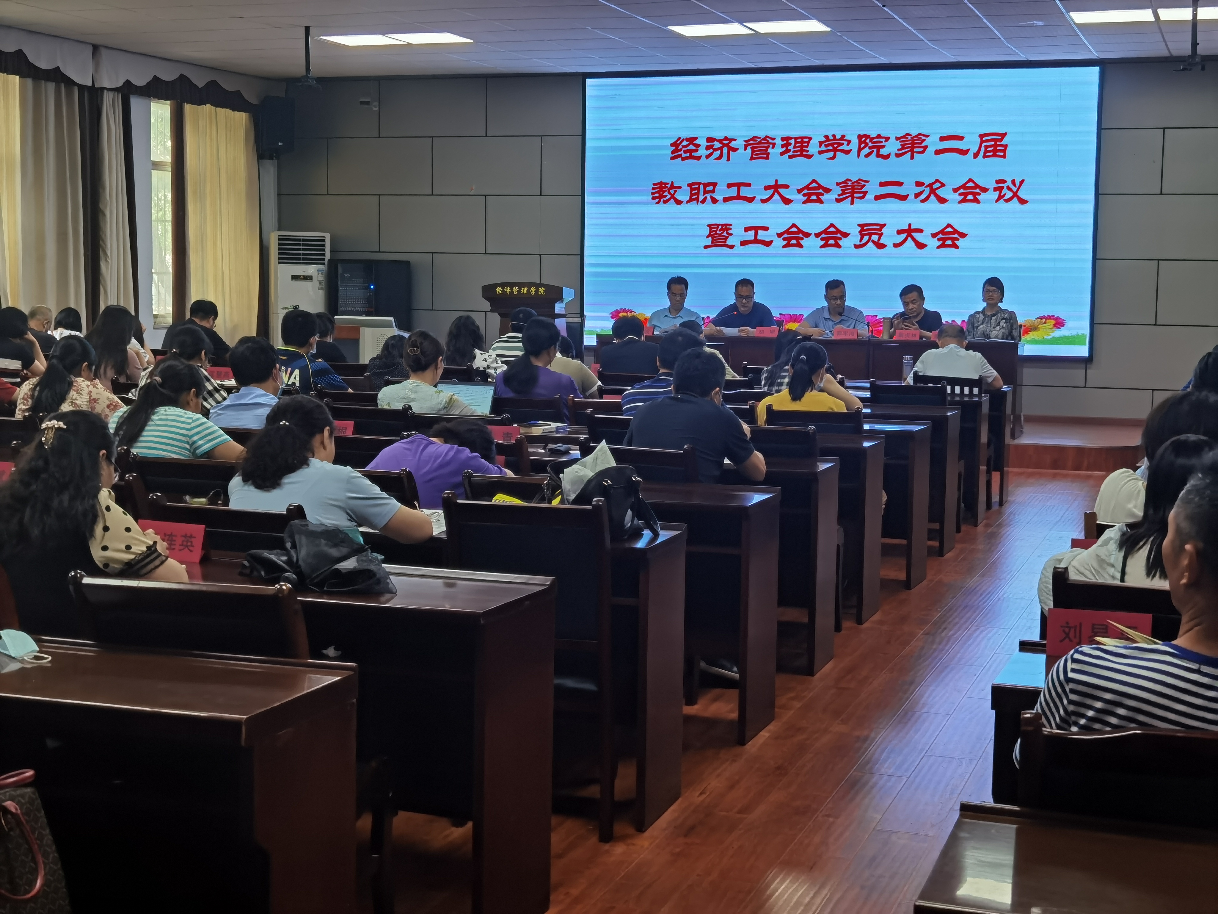2022年6月7日下午,经济管理学院第二届教职工大会第二次会议暨工会会员大会在经世楼207顺利召开。学院全体教师参加此次会议。