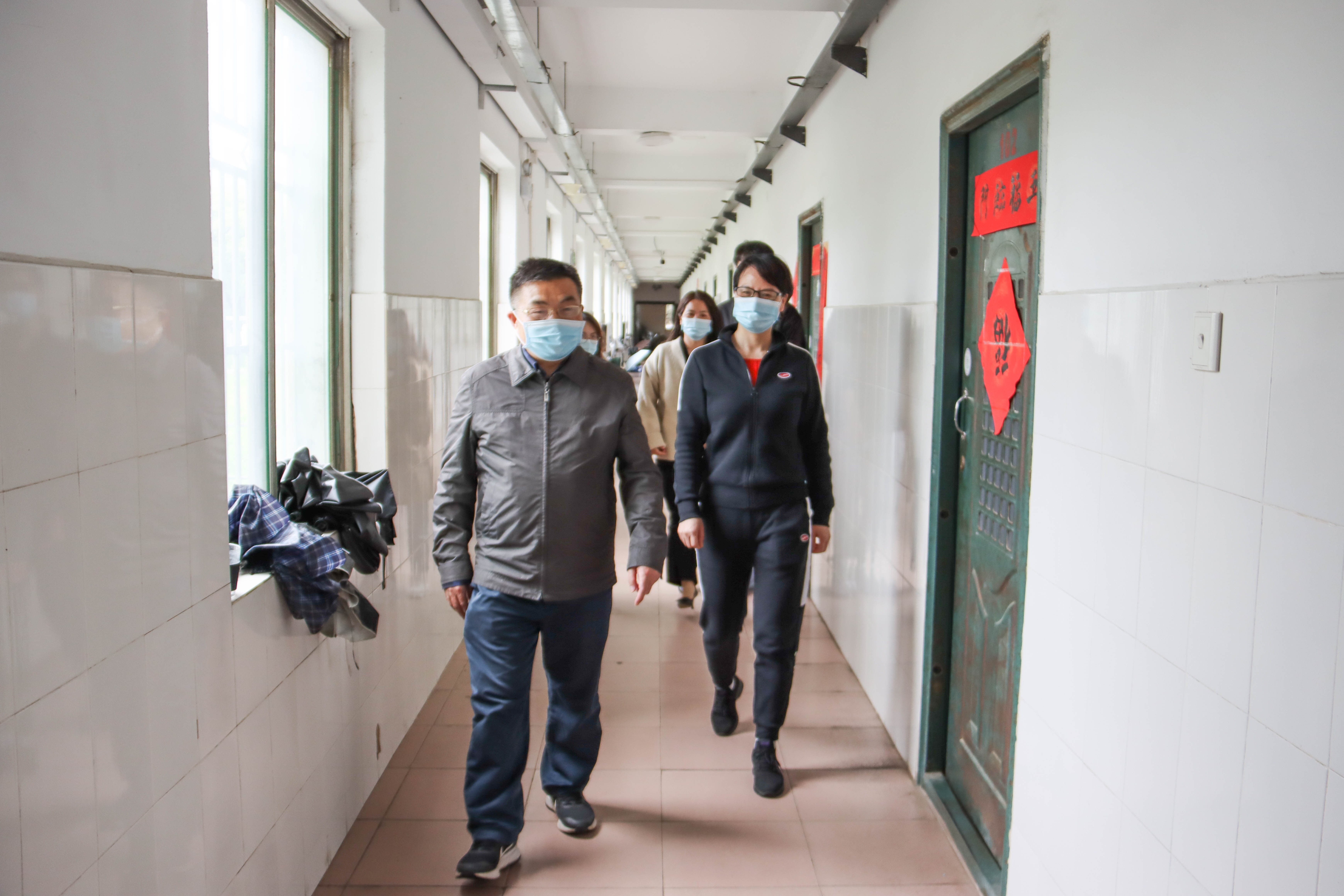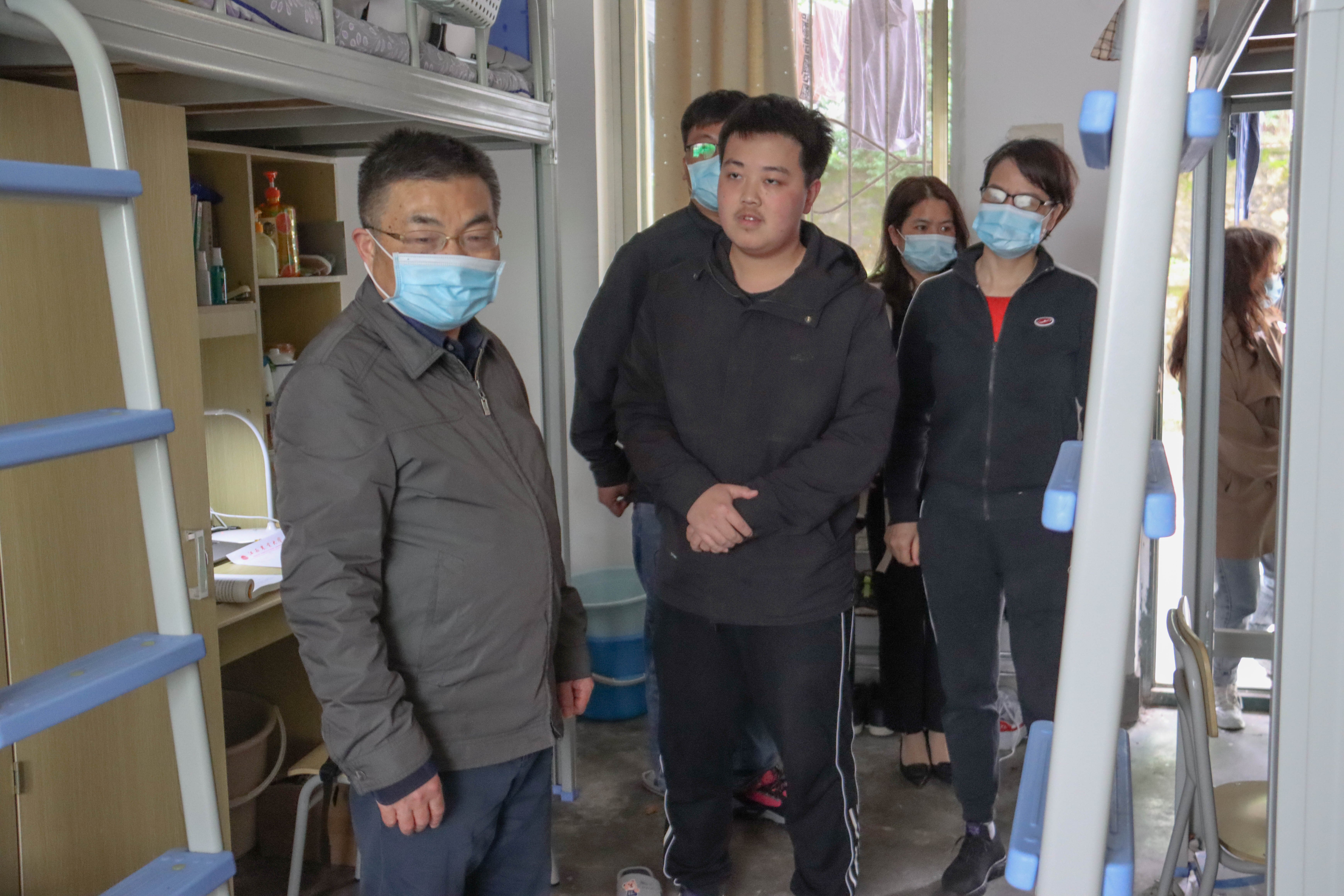 随后翁贞林就学院在疫情期间实行的“五级网格”管理方案进行调研。受访学生表示,自3月22日学院实行“五级网格”管理方案以来,学院领导、学工办老师、楼层长会对寝室进行不定期的走访,及时提醒同学体温日常打卡,进行核酸检测,对于过往有心理问题和家庭困难的学生还会进行日常关怀,广大同学都感受到了来自学院的温暖,坚定了抗疫必胜的决心。