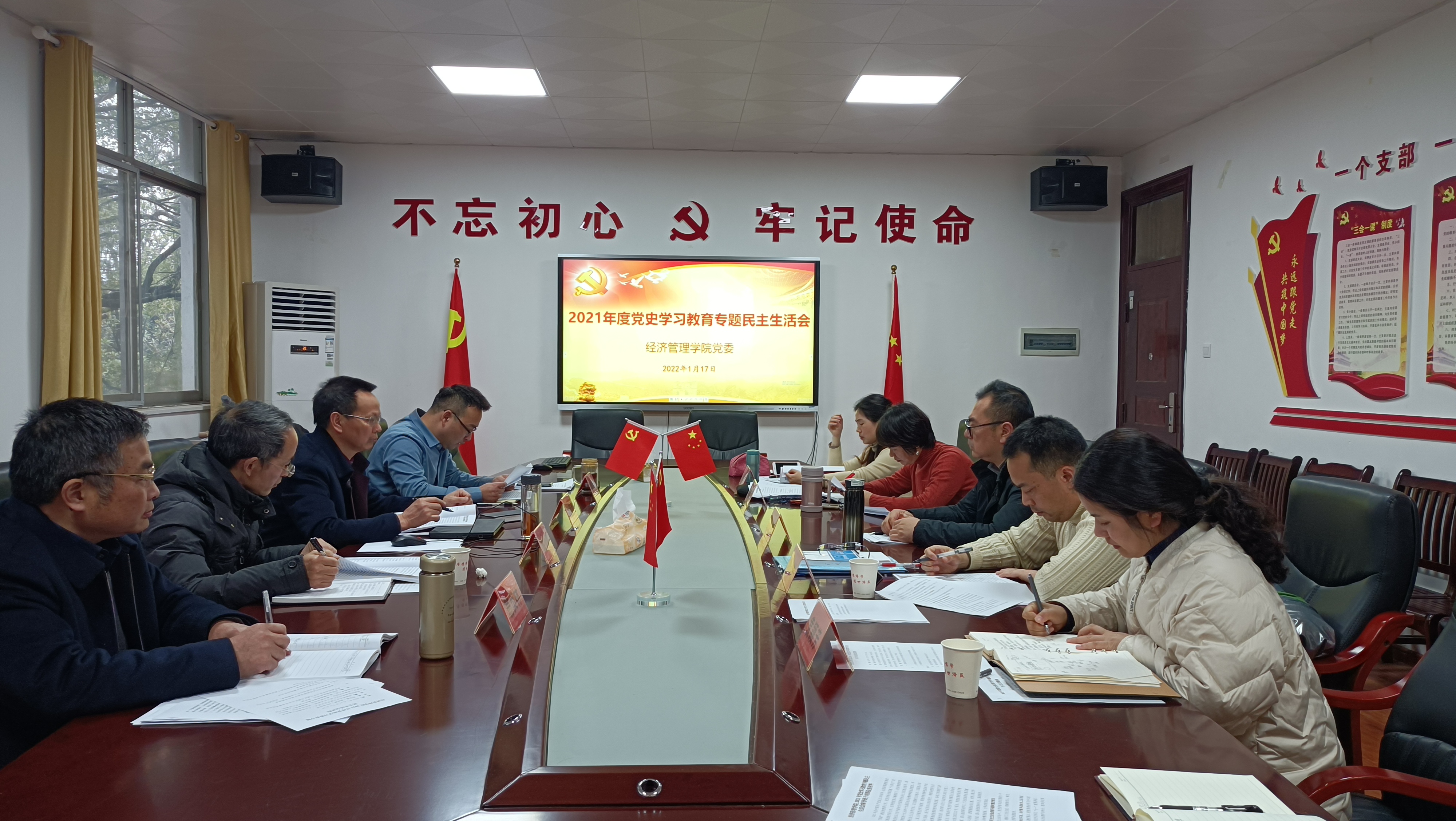 1月17日下午,经济管理学院党委在经世楼204会议室召开2021年度党史学习教育专题民主生活会。校党委委员、副校长黄英金,校机关党委副书记陈少卿莅临指导。学院党委书记郭军海主持会议,全体领导班子成员参加会议。