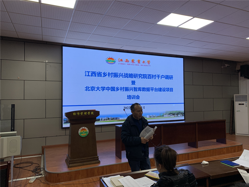 此次调研活动,教师热情参与,学生踊跃报名参加,共组成由学院教师带队、本硕博学生参与的12支调研组,即新建县、进贤县、永新县、万安县、浮梁县、彭泽县、瑞金市、大余县、奉新县、芦溪县、资溪县、玉山县等,共计150多名师生参与。出发前,北京大学中国农业政策研究中心罗仁福教授和智华勇博士进行为期2天的问卷培训。这次调研,适逢年底,村组干部们工作繁忙,涉及乡村振兴的五个方面,调查问卷丰富,工作任务繁重,且天气寒冷,队员们不畏艰难,互帮互助,圆满完成了调研任务。