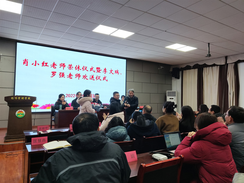 会议伊始,学院领导及全体教师为肖小红老师举办了荣休仪式,为李文瑞、罗强老师举办了欢送仪式,感谢他们为学院发展建设作出的积极贡献。