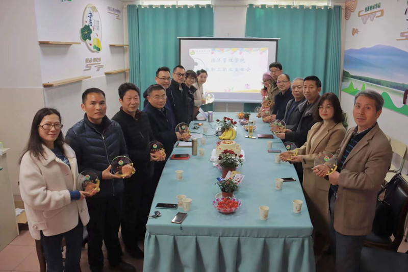 职业生日会上,学院领导和老师们共话家常,老师们也分享自己入职工作时的趣事,气氛和谐温馨、欢声笑语不断。最后,学院党委书记郭军海、院长翁贞林和工会主席赵刚为“寿星们”送上精心设计的纪念品和生日蛋糕,共唱祝福歌,并集体合影留念。