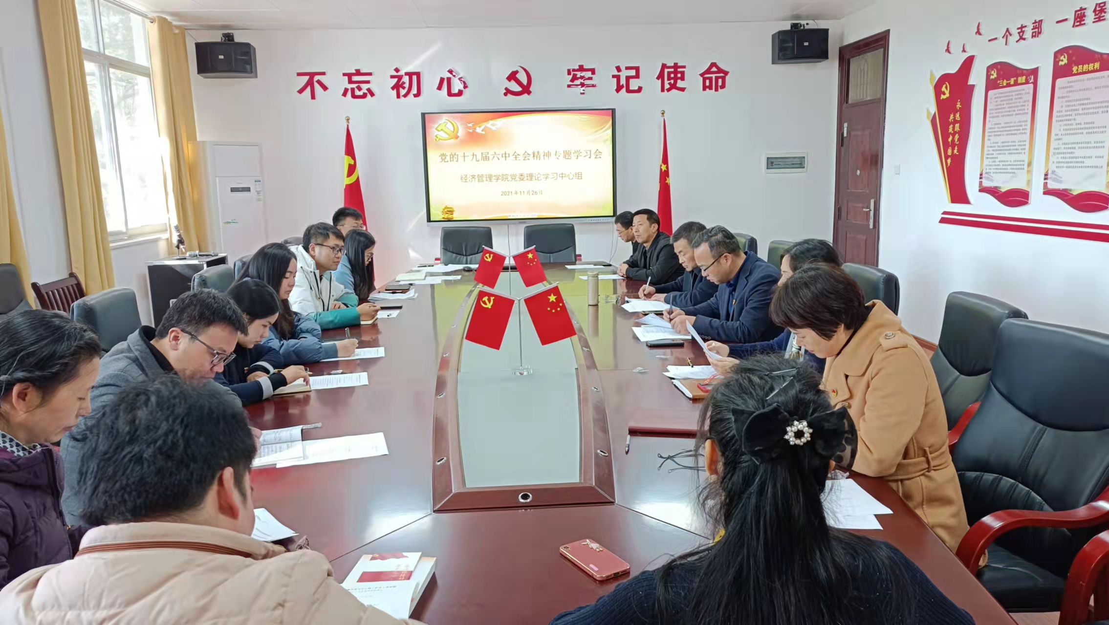 为深入学习贯彻党的十九届六中全会精神,切实把思想和行动统一到全会精神,11月26日上午,经济管理学院党委理论学习中心组召开党的十九届六中全会精神专题学习会,院党委领导班子成员、各党支部书记参加会议,会议由院党委书记郭军海主持。