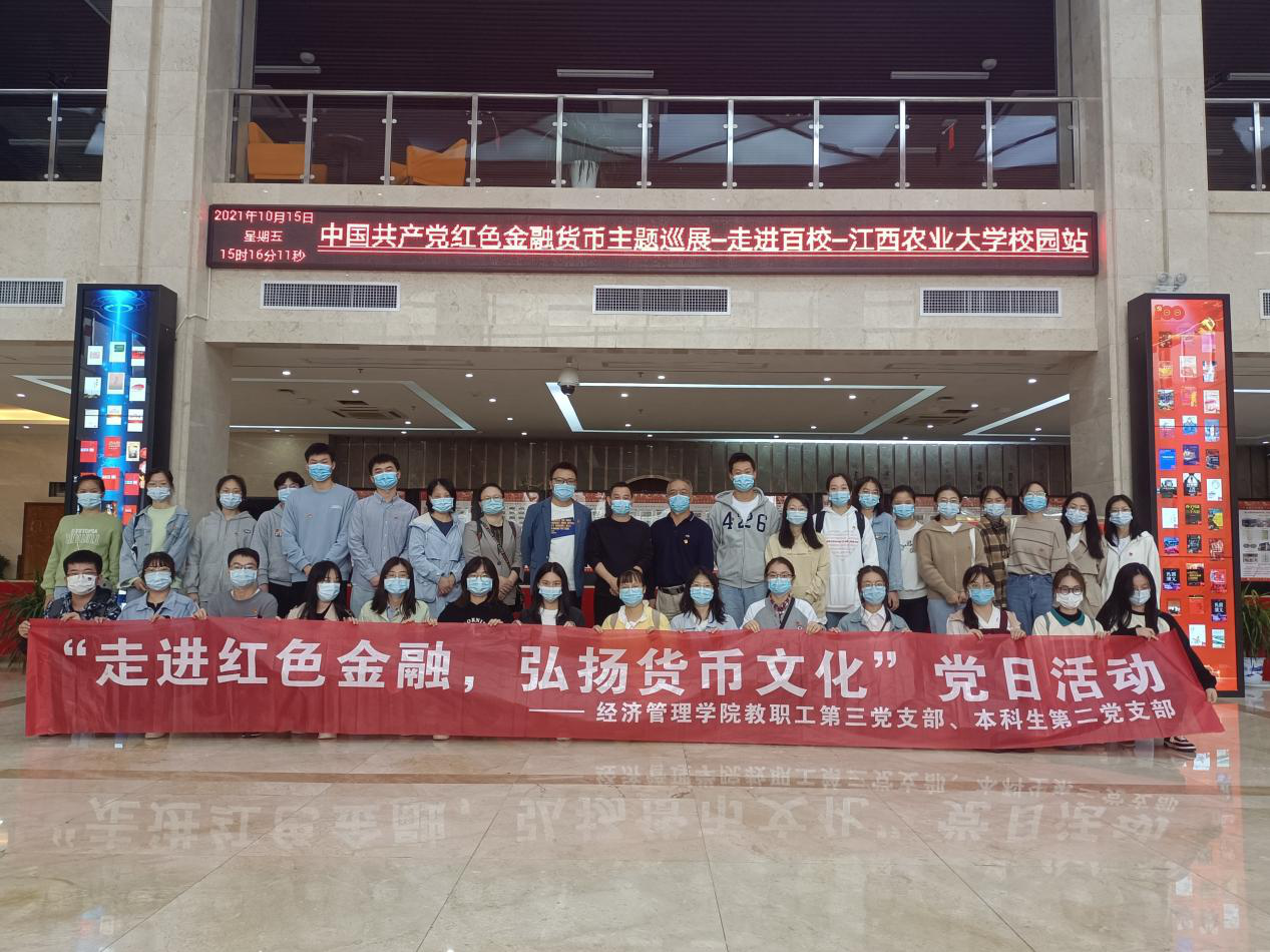 为进一步增强党史教育与专业素养的深度融合、发挥党员先锋模范作用、强化责任担当,10月15日下午经济管理学院教职工第三党支部联合本科生第二党支部金融学专业学生共赴本部逸夫图书馆开展“走进红色金融,弘扬货币文化——参观中国共产党红色金融货币主题巡展”党日活动。