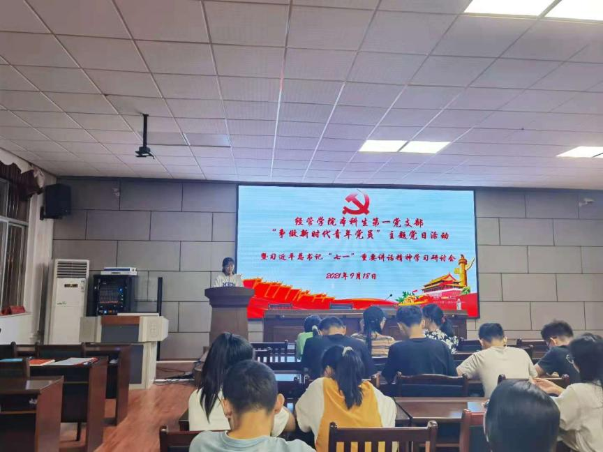 为促进新时代青年党员在真学真信中坚定理想信念,在学思践悟中牢记初心使命,经管院本科生第一党支部于2021年9月18日在教研楼207组织开展“争做新时代青年党员”主题党日活动——暨习近平总书记“七一”重要讲话精神研讨会。